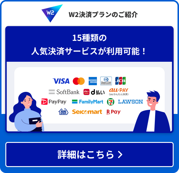 W2 Unifiedが対応している決済手段は、主に以下のとおりです。
